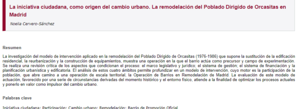 La iniciativa ciudadana, como origen del cambio urbano. La remodelación del Poblado Dirigido de Orcasitas en Madrid